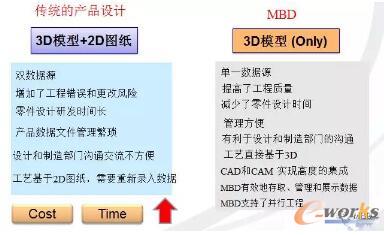 MBD研发制造模式对比传统二维工程图模式特点如下图