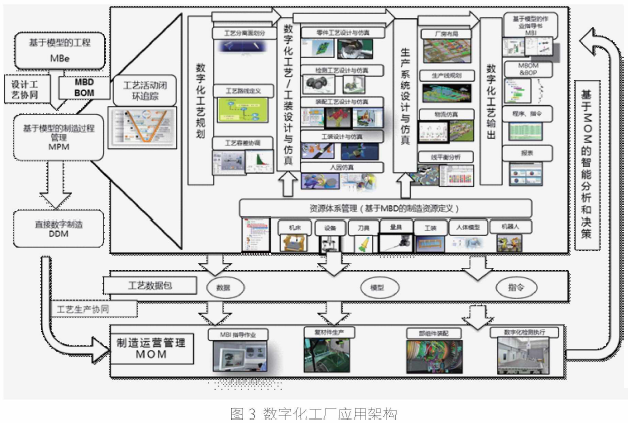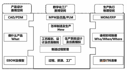 在PLM视角下,数字化工厂有三大内涵,分别为:以MBD模型为核心的数字化协同研制;以虚拟仿真为手段的数字化制造和生产过程的验证分析;以制造过程管控数据与模型为基础的数字化制造和生产过程的优化决策。